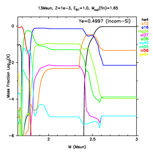 | Mstart=1.65 | yield decayed, distribution, X/Fe elements, X/O16 isotopes | Mstart=1.65 | yield decayed, distribution, X/Fe elements, X/O16 isotopes |