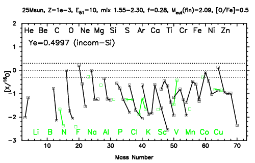 | 25M,E51=10,Z=0.001,MCfin=2.13,M(56Ni)=0.07 | 25M,E51=10,Z=0.001,MCfin=2.09 (Mixing-fallback: [O/Fe]=0.5) | ||