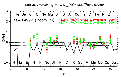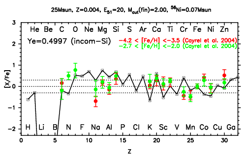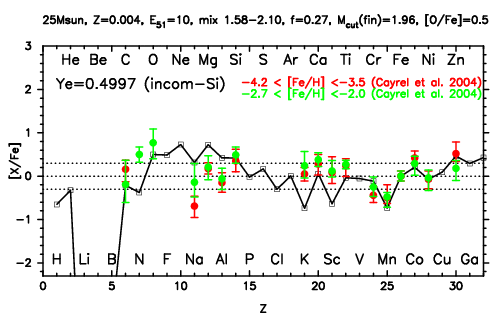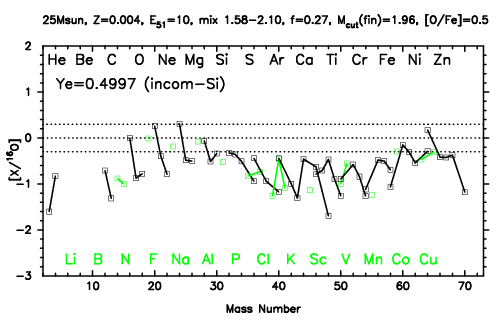 | 25M,E51=10,Z=0.004,MCfin=1.90,M(56Ni)=0.07 | 25M,E51=10,Z=0.004,MCfin=1.96 (Mixing-fallback: [O/Fe]=0.5) | ||