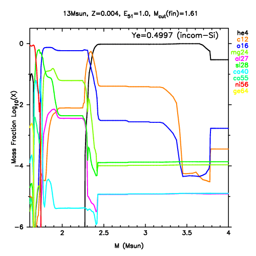 | 13M,E51=1.0,Z=0.004,MCfin=1.61,M(56Ni)=0.07 | |||