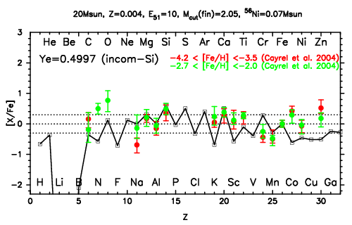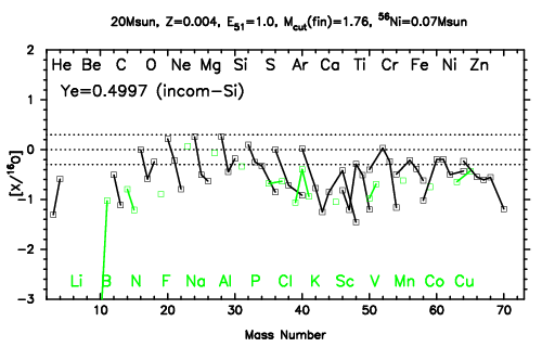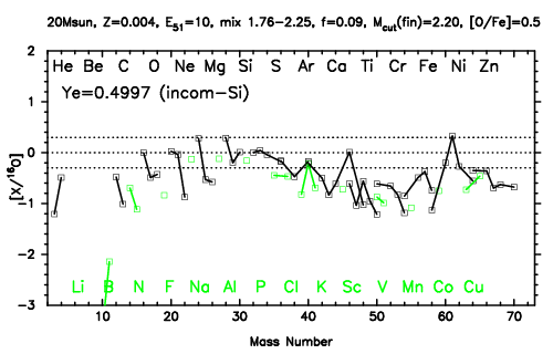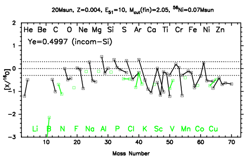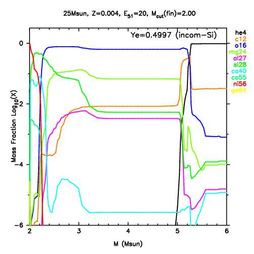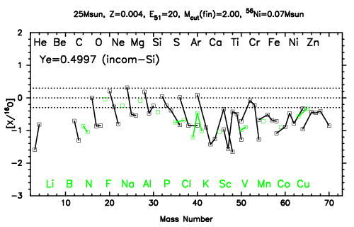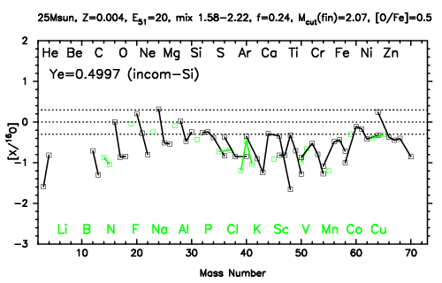 | 25M,E51=20,Z=0.004,MCfin=2.00,M(56Ni)=0.07 | 25M,E51=20,Z=0.004,MCfin=2.07 (Mixing-fallback: [O/Fe]=0.5) | ||