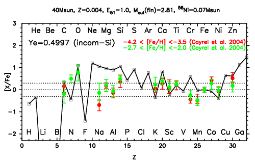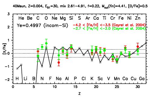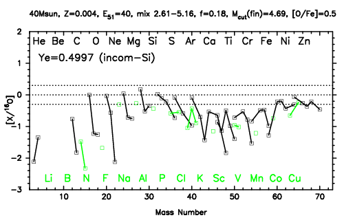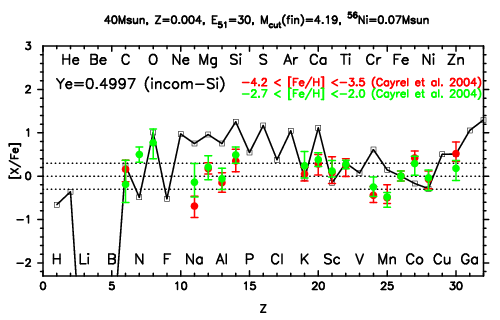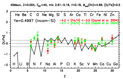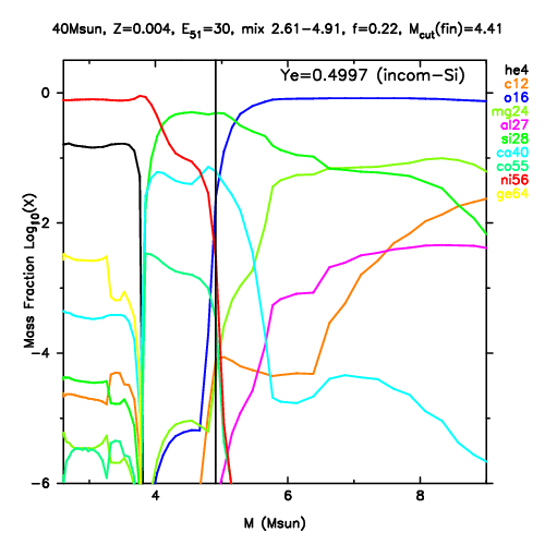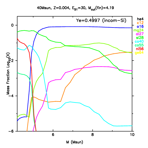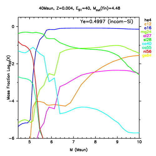 | 40M,E51=40,Z=0.004,MCfin=4.48,M(56Ni)=0.07 | 40M,E51=40,Z=0.004,MCfin=4.69 (Mixing-fallback: [O/Fe]=0.5) | ||